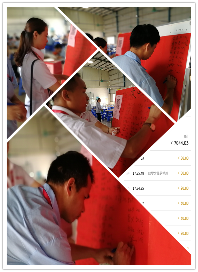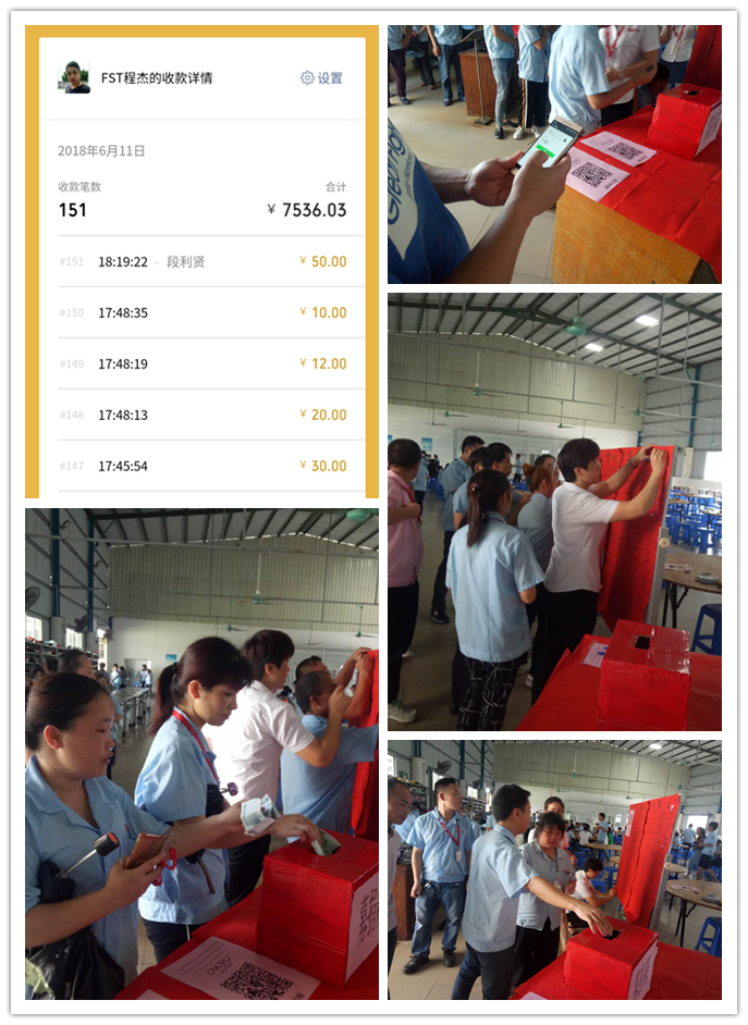 發(fā)斯特愛(ài)心基金會(huì)于2018年6月11日中午11:30分/下午16:30分在公司食堂組織全體員工為羅文鋒捐款,現(xiàn)金捐款及微信捐款同步進(jìn)行。工友們都紛紛解囊、伸出援手,五元,十元,百元……;出差同事委托在廠的同事代捐;客戶在我司駐廠人員也加入愛(ài)心行動(dòng)。