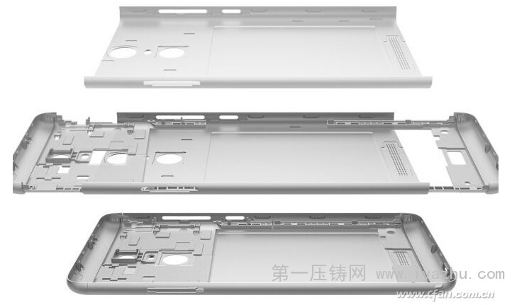 所謂三段式是指中間為金屬,上下兩端為塑料,再將它們拼接在一起的設(shè)計(jì)方案。三段式是金屬手機(jī)中的“廉價(jià)貨”,而沖壓工藝的則是三段式方案的最佳搭檔。