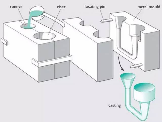 是指金屬液在地球重力作用下注入鑄型的工藝,也稱澆鑄。其金屬液一般采用手工倒入澆口,依靠金屬液自重充滿型腔、排氣、 冷卻、開模得到產(chǎn)品。